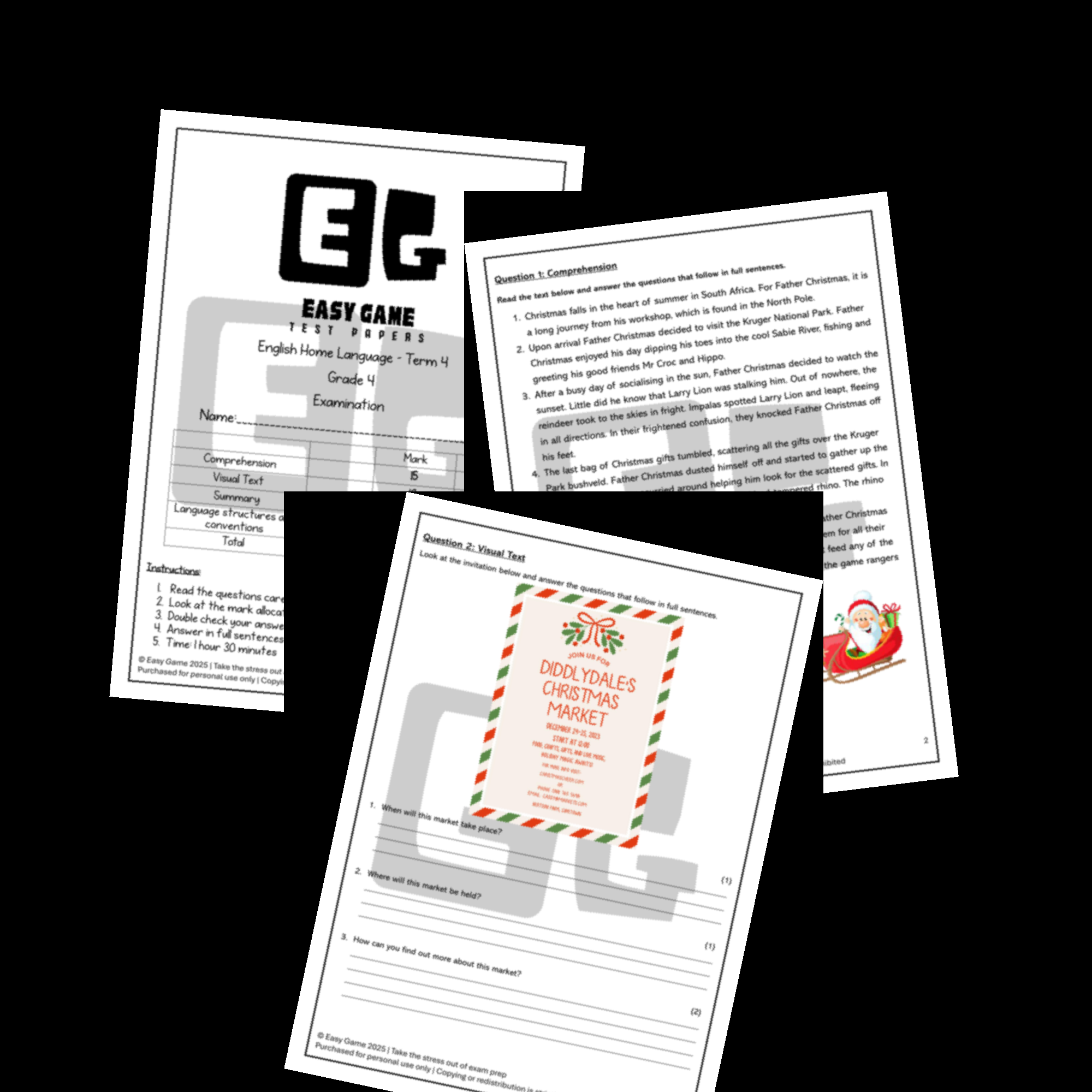 This Grade 4 English Home Language Term 4 test paper is designed to support students in preparing effectively for their end-of-term assessments.