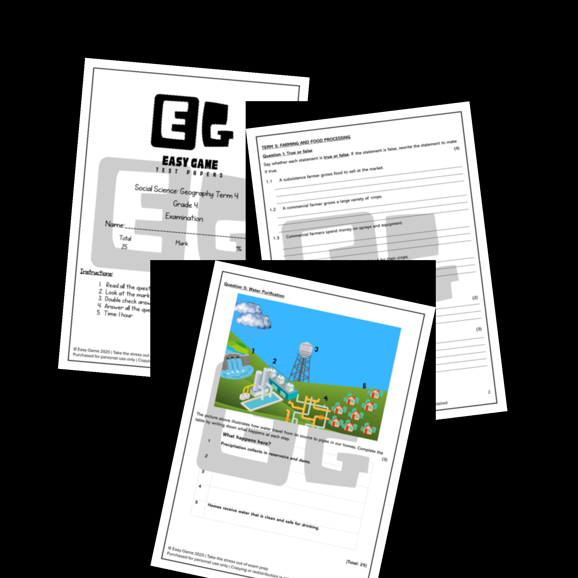 This Grade 4 Geography test paper is designed specifically for learners following the CAPS curriculum in South Africa. This test paper is focused on term 4.